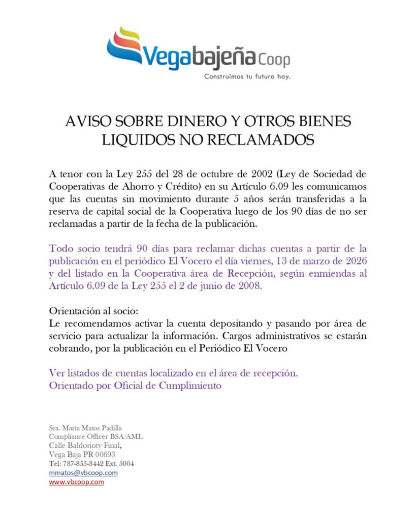 En Vegabajeña Coop, tus finanzas crecen.